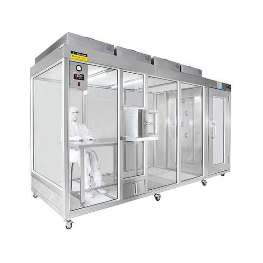 4、相对超净工作台,内部可用有效空间大;相对传统无尘室,成本低、施工快、且对楼层高度低。
